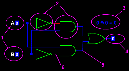 blue wire carries "0" signal.