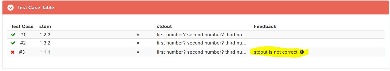 you are printing may be incorrect. This is where the test-case table in the Results tab comes in; it shows you any discrepancies between YOUR output