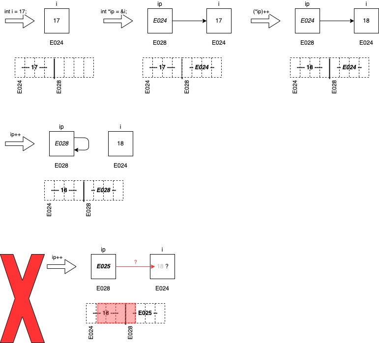 int *ip = &i; // ip is a pointer to integer; & is 'address-of' operator