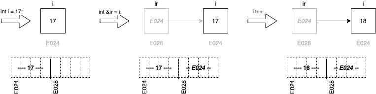 int i = 17; int &ir = i; // MUST be initialized in this context; rarely used in this manner … ir++; // increments i