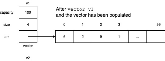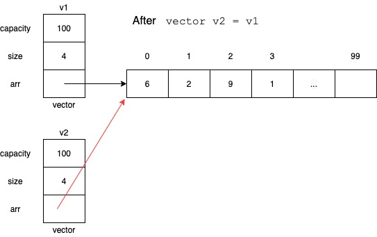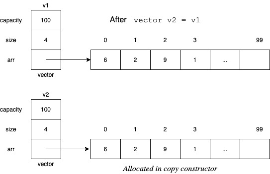 In this scenario, however, the programmer has written their own copy constructor which allocates a new underlying array for the