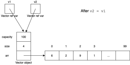 Notice the similarity to the Java scenario, the pointers acting in the same capacity as the reference variables