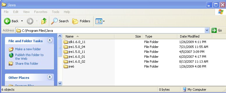 As you can see, I have several JRE's installed (for no particular reason), and one JDK (1.6.0_11) installed. The bin